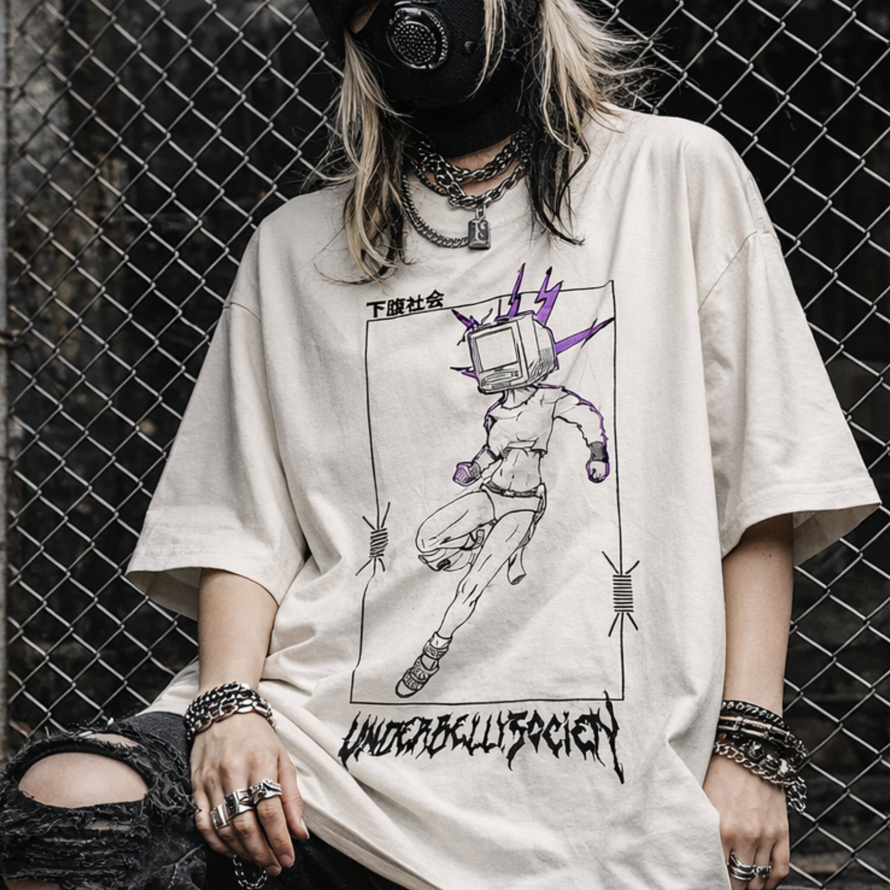 SUPER V is an oversized, faded tee made to feel lived in from day one. With a relaxed silhouette and a charged graphic presence, it sits somewhere between future tension and familiar wear. Built for layering, late nights, and forward motion.